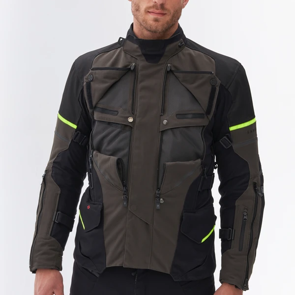 Aż 13 regulowanych kanałów wentylacyjnych dba o komfort motocyklisty w trasie. Za wyjątkowo wydajną wentylację w kurtce odpowiadają m. in. 4 wloty w przedniej części, centralny panel wentylacyjny oraz kanały na przedramionach. Kurtka ma również kołnierz regulowany przy pomocy magnetycznego systemu zapięć Fidlock®, który bez problemu można obsługiwać w trakcie jazdy.