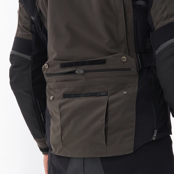 Kurtka tworzy komplet ze spodniami Range, które można spiąć przy pomocy zamków łączących (360° lub krótkiego). Krótki zamek łączący umożliwia także spięcie kurtki z jeansami z nowej kolekcji Rebelhorn. Dzięki zastosowaniu dzielonej klapy zamek w dolnej części nie rysuje baku, a górną cześć kurtki można swobodnie odpiąć.