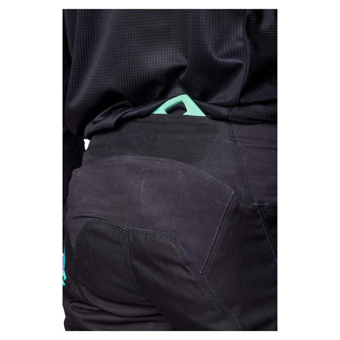 - Aby zapewnić trwałość, spodnie wykorzystują wytrzymałą konstrukcję z poliestru 600D w głównej części. Skórzane, odporne na ciepło i ścieranie panele na wysokości kolan na obu nogawkach zapewniają dodatkowe wzmocnienie w najbardziej krytycznych obszarach zużycia, szczególnie w przypadku tarcia wskutek wstrząsów.