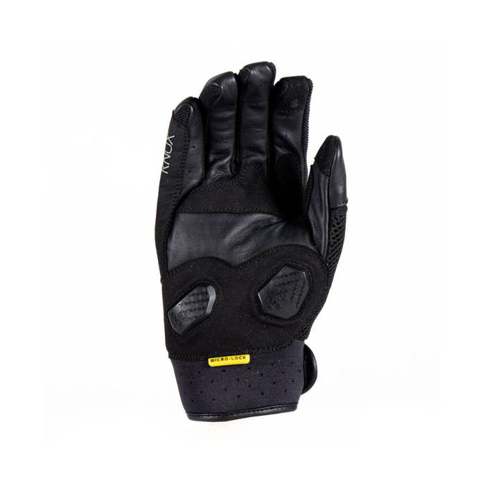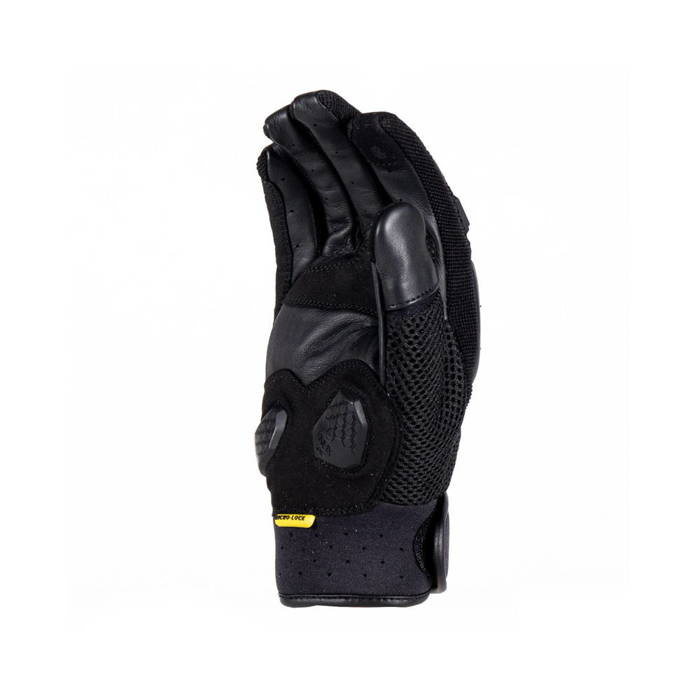 Konstrukcja to lekkie i odporne na ścieranie połączenie materiałów tekstylnych i skórzanych - całość zapewnia bezkompromisową wydajność. Wygodne i wytrzymałe, skórzane wykończenie dłoni jest uzupełnione wysoce oddychającą siateczką 3D mesh na grzbiecie dłoni aby zapewnić wydajną wentylację. Technologia Micro-lock znalazła zastosowanie w miękkiej i wytrzymałej, termoplastycznej, oddychającej osłonie knykci. Te dwa elementy gwarantują doskonałą absorpcję uderzeń.