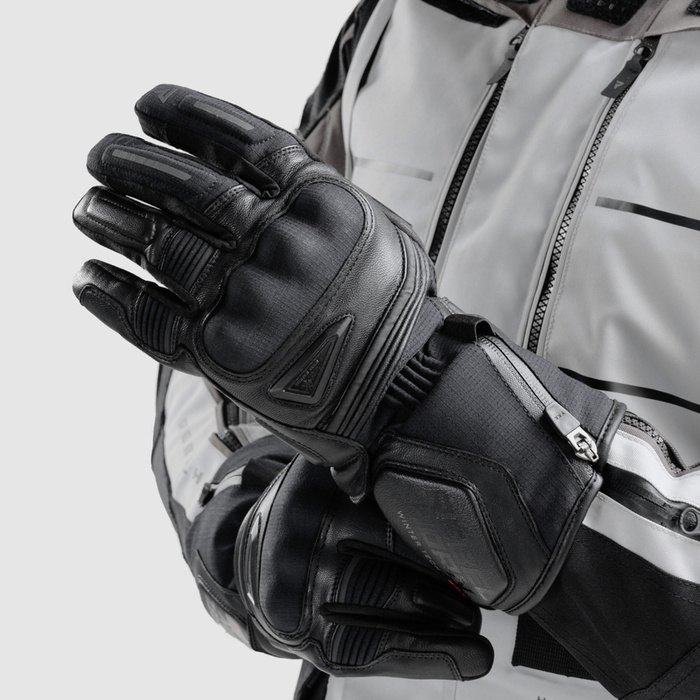 Długie rękawice motocyklowe Rebelhorn Summit Winter zostały stworzone dla miłośników turystyki motocyklowej, są idealne na zimowe warunki. Oferują one zaawansowaną ochronę i komfort, łącząc wodoodporną membranę HydraShieldTM, ocieplenie Primaloft® oraz technologię AX Suede Conductive, co czyni je niezastąpionymi w trudnych warunkach pogodowych.