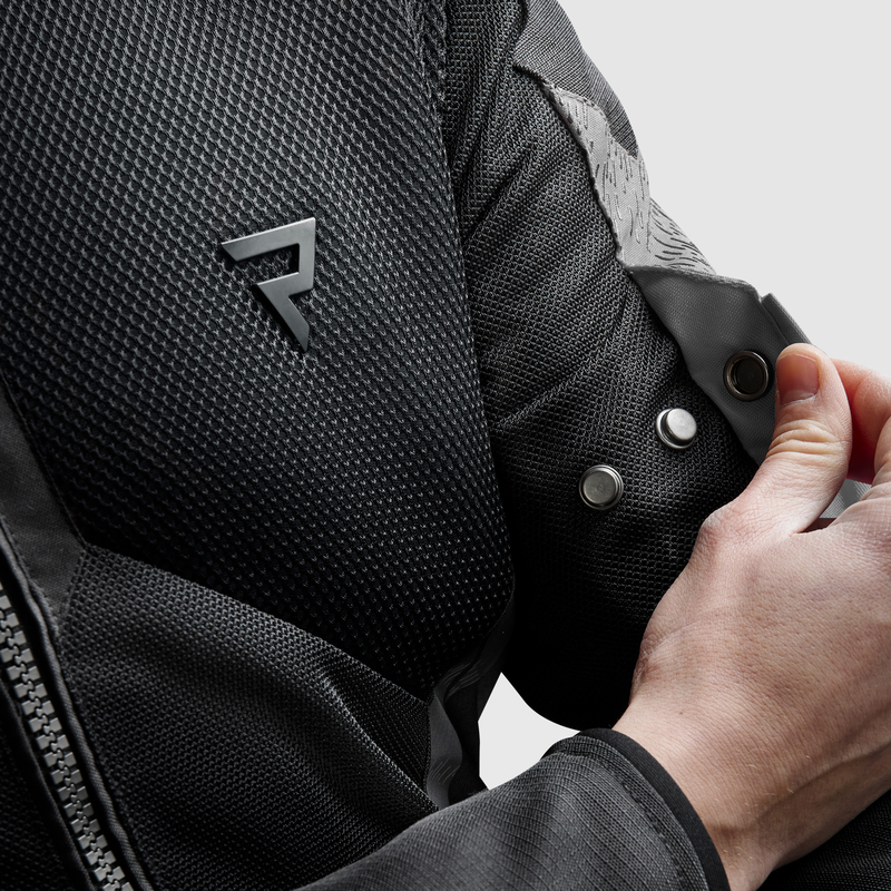 Kurtka JAX ma skrócony przód, który nie podwija się podczas jazdy na motocyklu, oraz dłuższy tył. Dzięki zastosowanej regulacji zapewnia świetne dopasowanie.