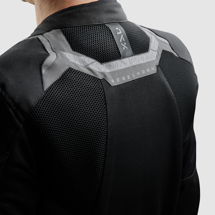 Kurtka motocyklowa Rebelhorn JAX łączy unikalny design z niezawodnym bezpieczeństwem i komfortem jazdy. Dzięki zaawansowanym ochraniaczom, ergonomicznemu krojowi i wyglądowi, stanowi idealny wybór dla motocyklistów preferujących dynamiczną jazdę miejską. Inspiracją dla projektanta była idea harmonijnego połączenia człowieka z maszyną. JAX posiada subtelnie wkomponowane elementy 3D, które podkreślają unikalność kurtki.