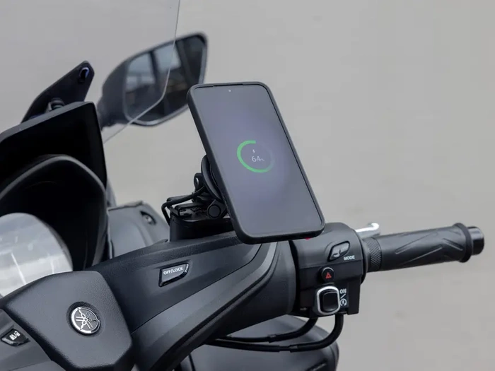 Dzięki opatentowanemu dwustopniowemu mechanizmowi mocowania masz pewność, że Twój smartfon pozostanie bezpiecznie zamocowany podczas jazdy, niezależnie od warunków. Uchwyt jest przymocowany do zbiornika płynu hamulcowego skutera za pomocą śrub blokujących gwint, co zmniejsza ryzyko poluzowania elementów złącznych z powodu czynników termicznych i mechanicznych, takich jak wibracje.