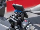 Głowicę wskaźnika można regulować pod kątem, a ramię ma wiele punktów obrotu, co zapewnia swobodę ustawienia smartfona pod optymalnym kątem widzenia, bez zakłócania pracy elementów sterujących skutera lub motocykla. Regulacja rozstawu otworów jest możliwa w zakresie od 38 mm do 70 mm (od 1 1/2" do 2 3/4"). Uchwyt można przesuwać na boki, gdy jest zamontowany na małych pokrywach zbiorników hamulcowych, zapewniając pełny dostęp do wszystkich elementów sterujących motocykla.
