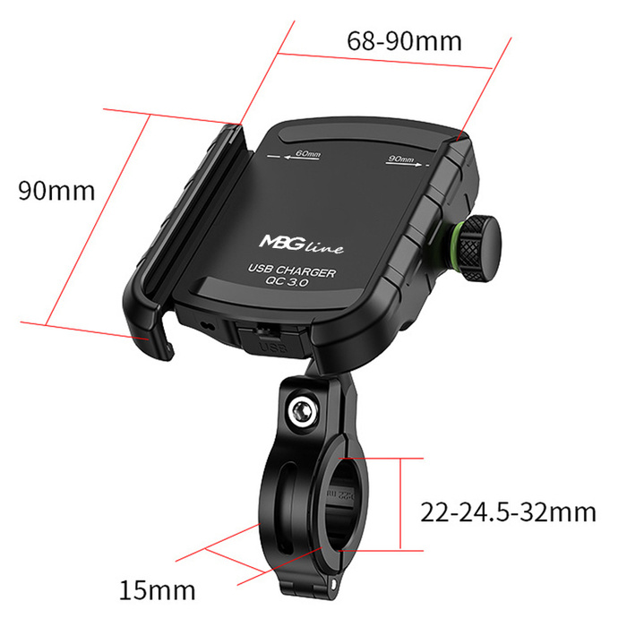 UNIWERSALNY UCHWYT NA TELEFON DO MOTOCYKLA MBG LINE PRO Z PORTEM SZYBKIEGO ŁADOWANIA QC3.0 I KABLEM USB W ZESTAWIE!