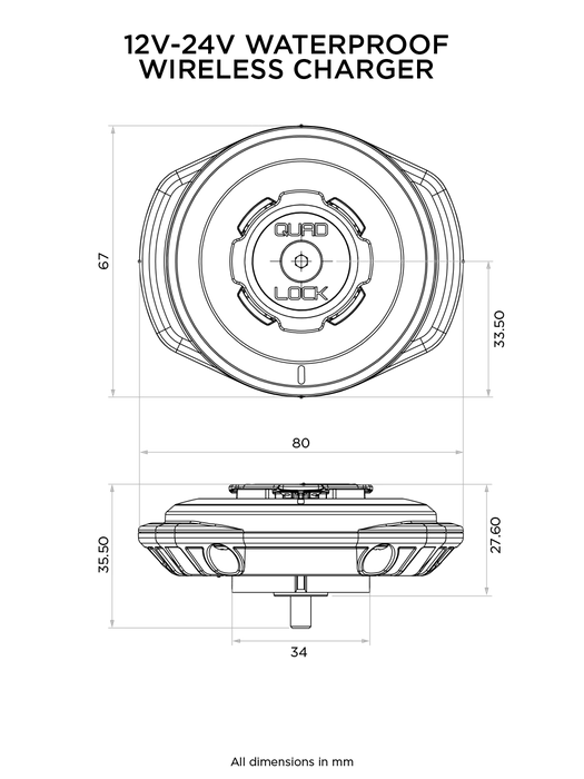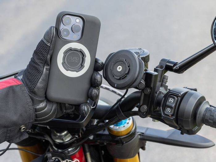 Dodaj głowicę z ładowarką indukcyjną do uchwytów motocyklowych Quad Lock®, aby zapewnić pewny montaż oraz odporną na warunki atmosferyczne funkcję ładowania bezprzewodowego.