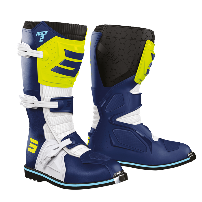 Buty motocyklowe off-road Shot Race 2 niebieskie-białe-fluo