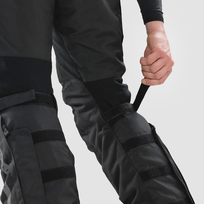 - Zamki: Spodnie zostały wyposażone w zamki łączące typu 8VST (360 oraz krótki) z pullerami ułatwiającymi obsługę