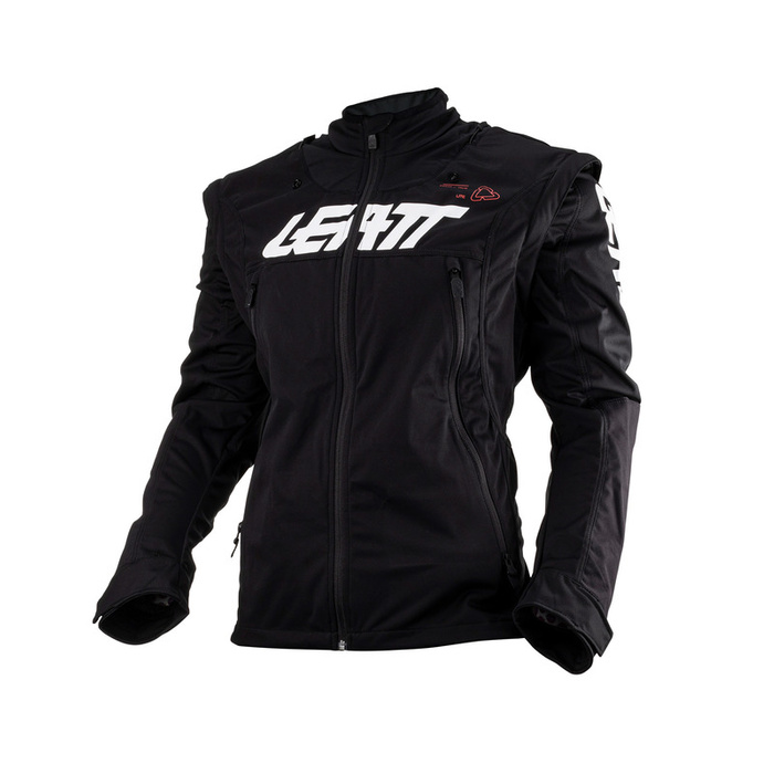 Kurtka LEATT 4.5 Lite łączy wodoodporność, oddychalność i lekkość, dzięki wykonaniu z materiału typu softshell. Posiada duże, zapinane na zamek otwory wentylacyjne oraz odpinane rękawy, które pozwalają utrzymać chłód nawet w upalne dni. Wzmocnienia z folii Brush Guard, odpornej na ścieranie i przecięcia, zwiększają trwałość paneli na łokciach i ramionach wykonanych z nylonu 1000D. Kurtka ma dopasowany krój do talii, zaprojektowany do noszenia z ochroną ciała lub bez niej, a kołnierz jest kompatybilny z ochraniaczem na szyję LEATT, zapewniając wszechstronne zastosowanie.