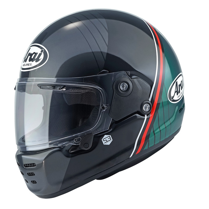 Arai Concept-XE jest kaskiem stworzonym dla motocyklistów, którzy cenią klasyczny styl, ale nie chcą rezygnować z wydajności i komfortu, jakie mogą zapewnić tylko nowoczesne, ręcznie wytwarzane skorupy Arai. Ma mocną, a jednocześnie lekką skorupę PB e-cLc, wzmocnioną opatentowanym przez Arai pasem obwodowym. W osiągnięciu idealnego, gładkiego kształtu pomaga obniżony system montażu wizjera – VAS. Dzięki temu zdolność do rozpraszania energii uderzeniowej przez skorupę kasku jest jeszcze lepsza, a twoje bezpieczeństwo większe.