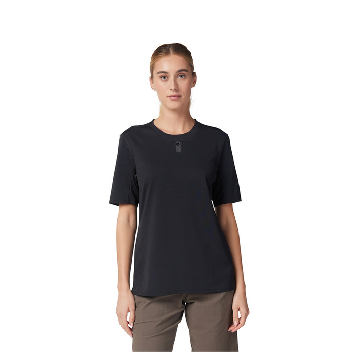 Damska koszulka rowerowa FOX LADY DEFEND - Stworzona do zjeżdżania po trasie z prędkością błyskawicy i wyglądająca równie imponująco. Dzięki tkaninie TruDri®, która odprowadza pot i utrzymuje świeżość, koszulka rowerowa Defend wykonana jest z materiałów z recyklingu, jest skrojona idealnie do jazdy po trasie, ma miejsce na ochraniacze oraz posiada przedłużony tył.
