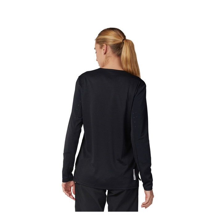 Damska koszulka rowerowa z długim rękawem FOX LADY DEFEND - Stworzona do zjeżdżania po trasie z prędkością błyskawicy i wyglądająca równie imponująco. Dzięki tkaninie TruDri®, która odprowadza pot i utrzymuje świeżość, koszulka rowerowa Defend wykonana jest z materiałów z recyklingu, jest skrojona idealnie do jazdy po trasie, ma miejsce na ochraniacze oraz posiada przedłużony tył.