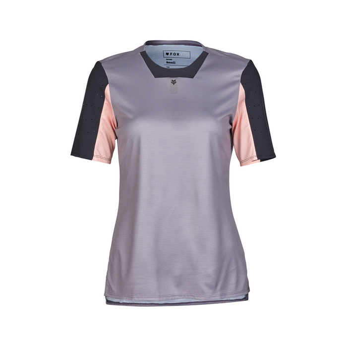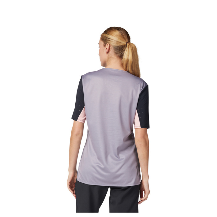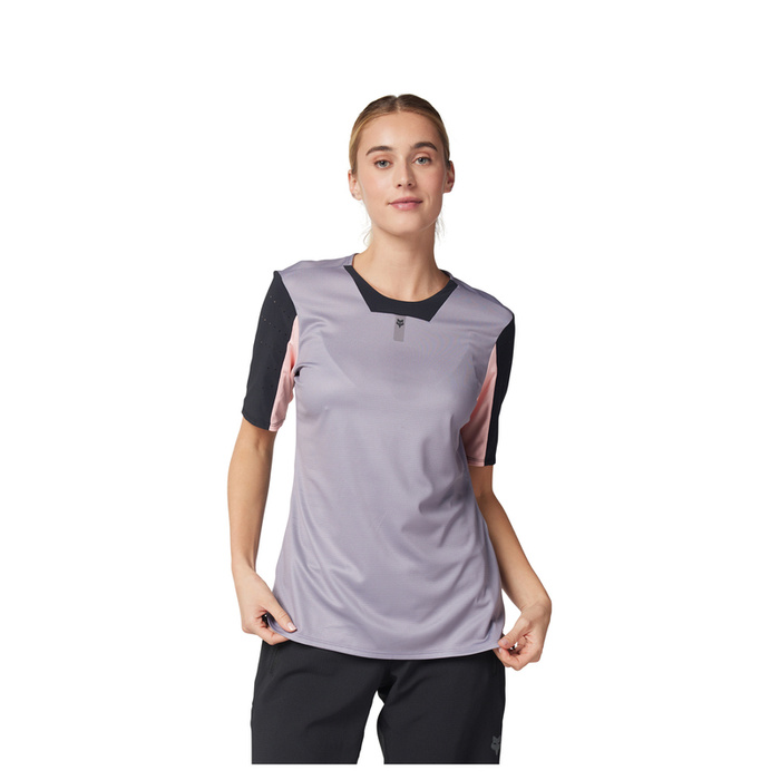 Damska koszulka rowerowa FOX LADY DEFEND - Stworzona do zjeżdżania po trasie z prędkością błyskawicy i wyglądająca równie imponująco. Dzięki tkaninie TruDri®, która odprowadza pot i utrzymuje świeżość, koszulka rowerowa Defend wykonana jest z materiałów z recyklingu, jest skrojona idealnie do jazdy po trasie, ma miejsce na ochraniacze oraz posiada przedłużony tył.