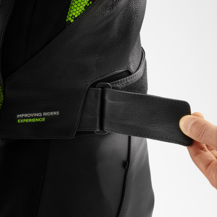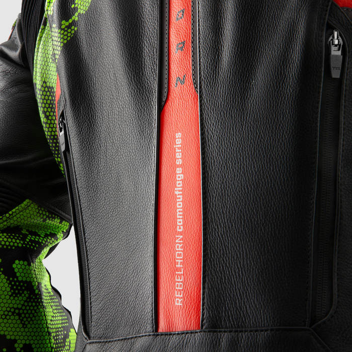 Motocyklowa kurtka Rebelhorn Veloce, dzięki przemyślanemu krojowi, zapewnia komfort użytkowania na co dzień, jak i w turystyce osobom preferującym bezpieczeństwo oferowane przez odzież skó,rzaną. Po połączeniu ze spodniami Veloce tworzy dwuczęściowy kombinezon. Zastosowanie wstawek z 4-way stretch zapewnia optymalne dopasowanie. Kurtka ma też rozbudowany system wentylacji.
