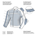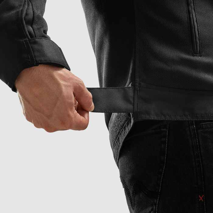 Kurtka posiada liczne opcje regulacji, które umożliwiają dopasowanie do sylwetki i poprawiają ergonomię podczas jazdy.