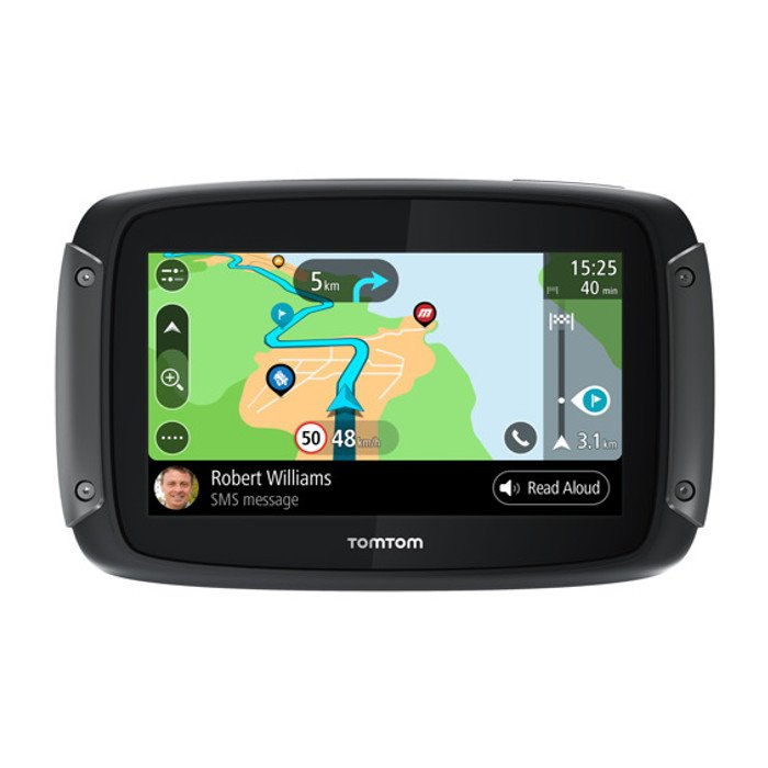 Wytrzymałe urządzenie TomTom Rider o metalowych krawędziach ma odporną na warunki pogodowe i upadki konstrukcję o stopniu ochrony IPX7. Jest wyposażone w szybki czterordzeniowy procesor i uruchamia się nawet pięć razy szybciej. Urządzenie nawigacyjne dla motocykli jest wyposażone w uniwersalny uchwyt RAM, dzięki czemu możesz wyruszyć w drogę szybciej niż kiedykolwiek wcześniej.