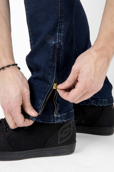 - Swoboda ruchów: Elastyczne wstawki nad kolanami, możliwość wyciągnięcia ochraniaczy bez konieczności zdejmowania spodni ułatwia używanie ich na co dzień