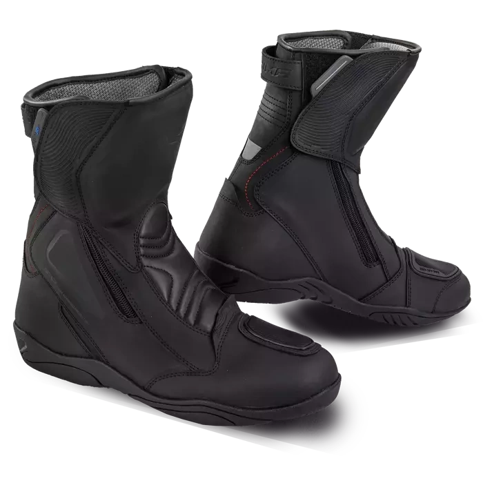 Buty TERRA to wszechstronny produkt, zaprojektowany w celu zapewnienia bezpieczeństwa, trwałości, wodoodporności i komfortu. Dzięki 2 suwakom bocznym i paskowi ściągającemu stopa łatwo się wsuwa pozostając na swoim miejscu. Optymalna wysokość buta sprawia, że jest on dobrym wyborem zarówno na miasto, jak i na trasę. Wykonany z matowej skóry z mikrofibry kryjącej wewnątrz wzmocnienia dla pięty, palców i podwójnych dysków TPU dla ochrony kostki. Odblaskowe detale zapewnią Ci widoczność po zachodzie słońca. Niska waga ułatwia korzystanie z nich po zejściu z motocykla. Posiadają membranę NextDry™, która ochroni Cię przed przemoczeniem, jeśli zaskoczy Cię nagły deszcz. Buty TERRA będą dla Państwa pierwszym wyborem, aby poradzić sobie z różnymi wyzwaniami na drodze!