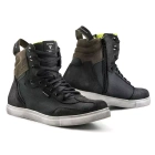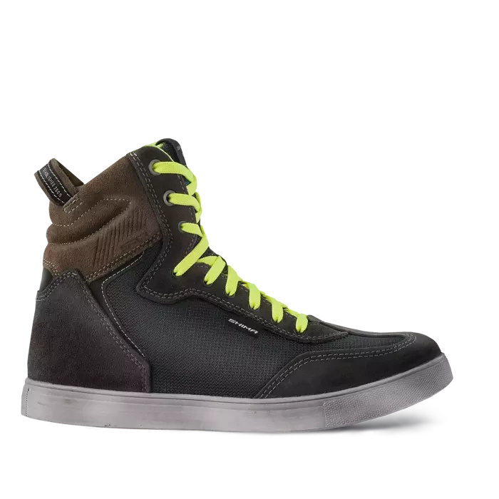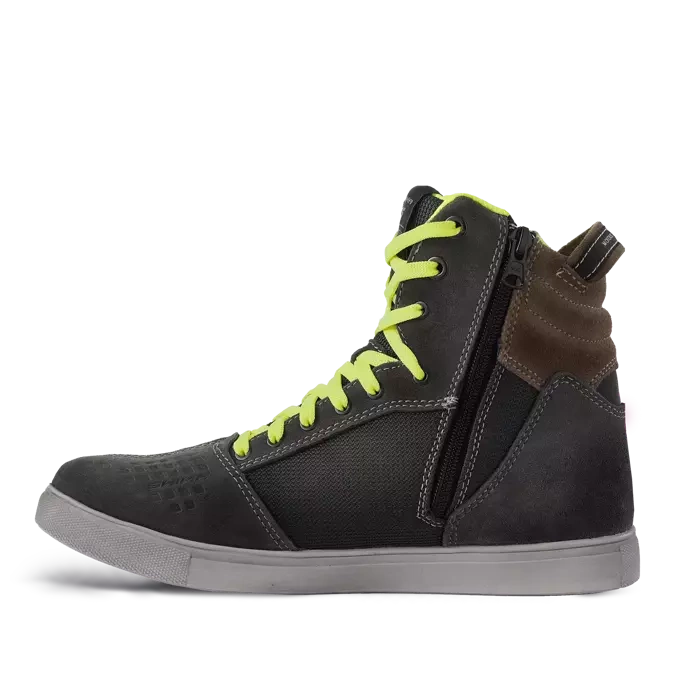 Inspirowane przestrzenią uliczną REBEL VENTED to stylowe trampki motocyklowe. Zaprojektowane dla maksymalnej wygody będą kompromisem pomiędzy ochroną a wyglądem miejskich butów codziennych. W zestawie występują z dwoma wersjami kolorystycznymi sznurówek. Żółte fluo dla osób lubiących przyciągać uwagę lub w klasycznej czerni dla eleganckiej stylizacji. Będziesz czuł się w nich swobodnie i wyjątkowo nawet po zejściu z motocykla. Skupiliśmy się na dodaniu tym butom dodatkowego komfortu. Wiemy jak utrudnione może być sznurowanie trampek motocyklowych, szczególnie w pełnym stroju. Dlatego REBEL VENTED posiadają dyskretny zamek błyskawiczny z boku, dzięki czemu nie musisz ich rozsznurowywać a zakładanie i zdejmowanie butów zawsze będzie szybkie i łatwe.
