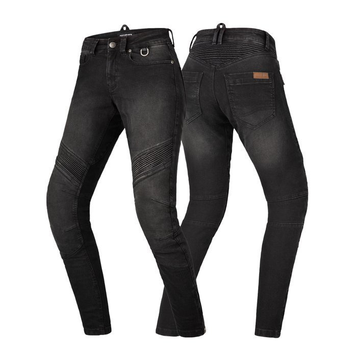 JESS to nowoczesne, dopasowane jeansy motocyklowe. Wyposażone są w specjalnie zaprojektowaną konstrukcję krocza Comfort+™, która zapewnia maksymalną wygodę podczas jazdy. Posiadają wyjmowaną wewnętrzną warstwę z włókien para-aramidowych Duralid™, która stanowi dodatkową ochronę przed przetarciem oraz są odporne na wysokie temperatury. Sylwetka spodni wymodelowana do pozycji motocyklowej z dodatkowymi panelami elastycznymi w obszarze kości ogonowej oraz w obszarze kolan. Protektory kolan umieszczone są w kieszonce z dostępem od zewnątrz, co sprawia, że łatwo można zamienić spodnie w zwykłe jeansy np. na czas pracy. Spodnie posiadają elementy odblaskowe, które podnoszą widoczność po zmroku oraz oczko D-buckle nad kieszenią z przodu do łatwego dopięcia breloka z kluczami. Z tyłu spodni znajduje się specjalna pętelka do szybkiego łączenia spodni z kurtkami damskimi SHIMA.
