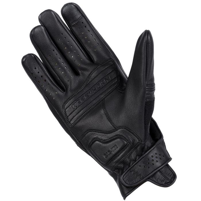 Klasyczne, krótkie rękawice motocyklowe Rebelhorn Thug II perforowane pasują do każdego typu motocykla. Są wykonane z miękkiej, wytrzymałej skóry, wyposażone w panele z absorbującej siłę uderzenia pianki SAS-TEC oraz możliwość obsługi ekranów dotykowych. Obszerne panele z perforowanej skóry zapewniają wydajną wentylację podczas jazdy. MATERIAŁ:
