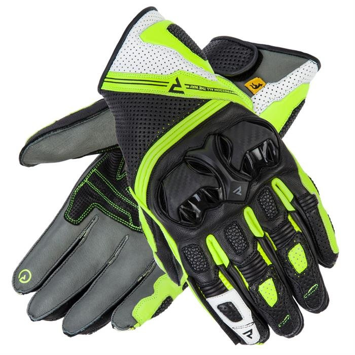 Rebelhorn ST Short to krótkie rękawice motocyklowe o sportowym charakterze. Wykonane ze skóry skóry koziej i kangurzej, rękawice ST Short są wytrzymałe i wygodne, oraz zapewniają pewny chwyt manetki. Bezpieczeństwo zapewnią ci twarde osłony kostek, panele z materiału Superfabric™ oraz pianka SAS-TEC. Dzięki obszernym panelom perforowanym, rękawice motocyklowe ST Short sprawdzą się nawet w bardzo ciepły dzień. MATERIAŁ: