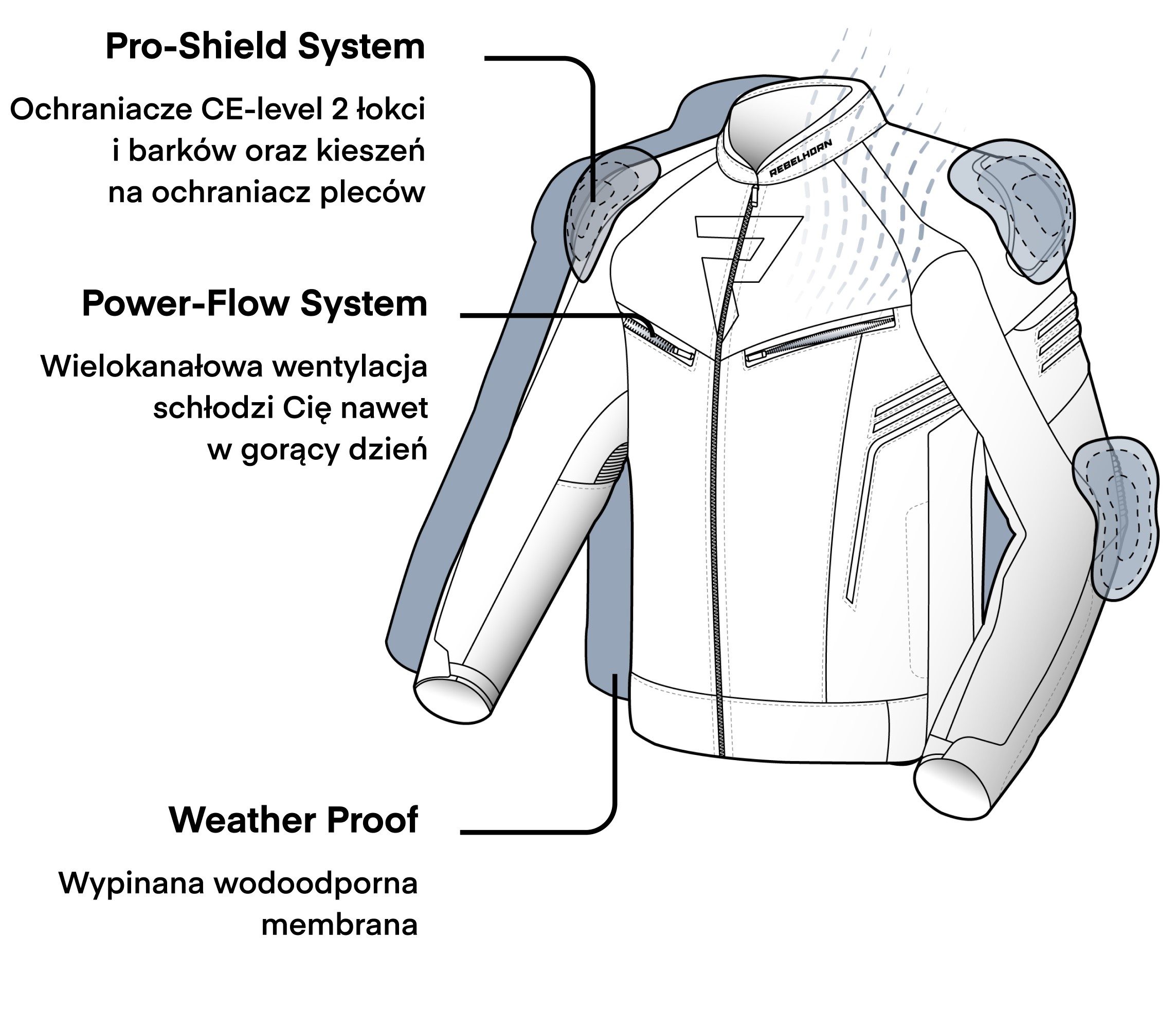 - Kieszeń umożliwiająca zastosowanie ochraniacza pleców