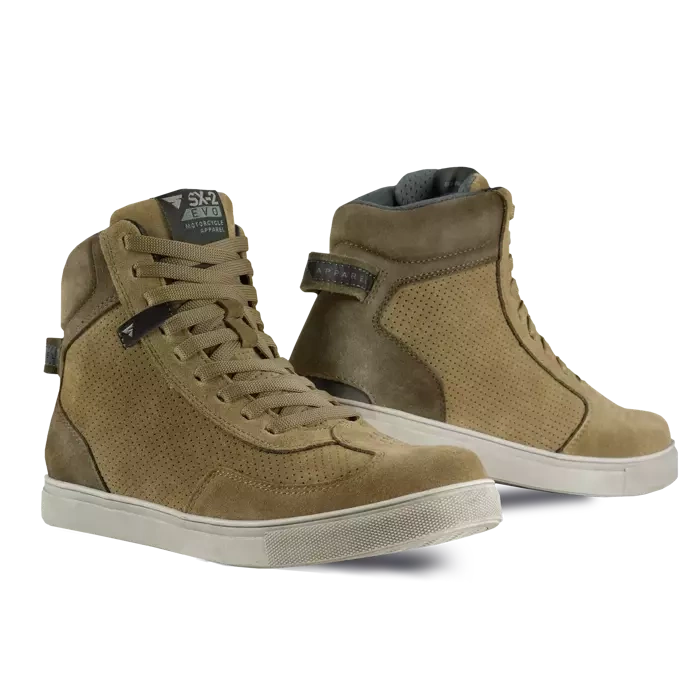Buty SX-2 EVO to idealne połączenie bezpieczeństwa, komfortu i stylu. Zostały stworzone z myślą o miejskiej jeździe w ciepłe, letnie dni. Ich przewiewność i funkcjonalność sprawiają, że doskonale sprawdzą się także po zejściu z motocykla - możesz śmiało wybrać się w nich do pracy czy na spotkanie z przyjaciółmi. Buty SX-2 EVO dostępne są w 3 wersjach kolorystycznych – granatowej, szarej i brązowej. Model w szczególności docenią miłośnicy wyrazistych dodatków podkreślających stylizację oraz fani odważnych rozwiązań. Do butów dołączone są bowiem 2 pary sznurówek – w kolorze butów oraz… fluo lub czerwonym!