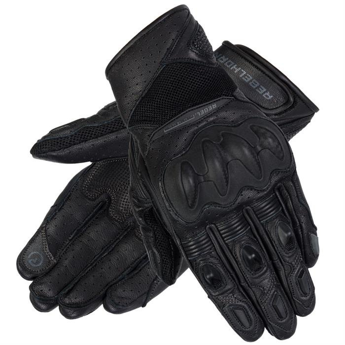 Rebelhorn Flux II to krótkie, przewiewne rękawice motocyklowe o sportowym charakterze. Znakomicie chronią dłonie dzięki zastosowaniu absorbującej energię uderzenia pianki SAS-TEC oraz odpornego na przetarcia materiału Superfabric ™.