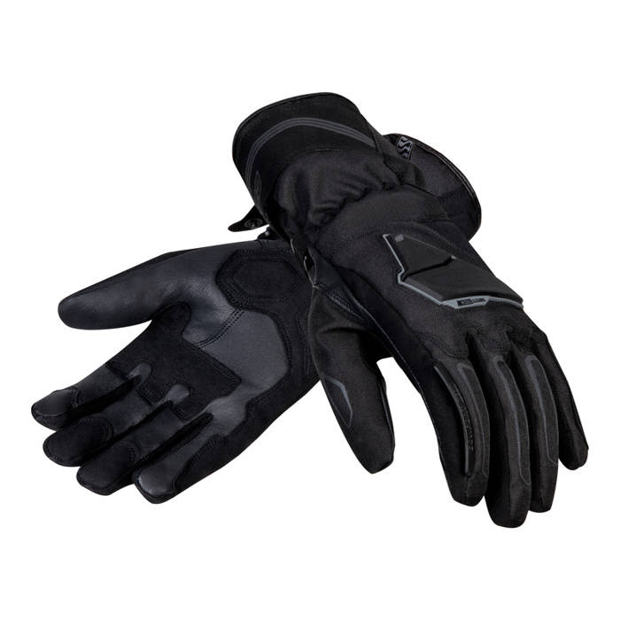Rękawice motocyklowe z koziej skóry, poliestru, nylonu i amary z podszewką micro mesh. Mają wodoodporną membranę HIPORA®, twardą osłonę palców i panele na kostkach z pianki absorbującej uderzenia i panel polepszający chwyt, ocieplinę wewnątrz i wycieraczkę do wizjera na palcu. Materiał