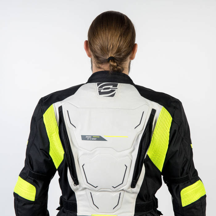Kurtka motocyklowa tekstylna miejska OZONE SAHARA czarna szary żółty fluo