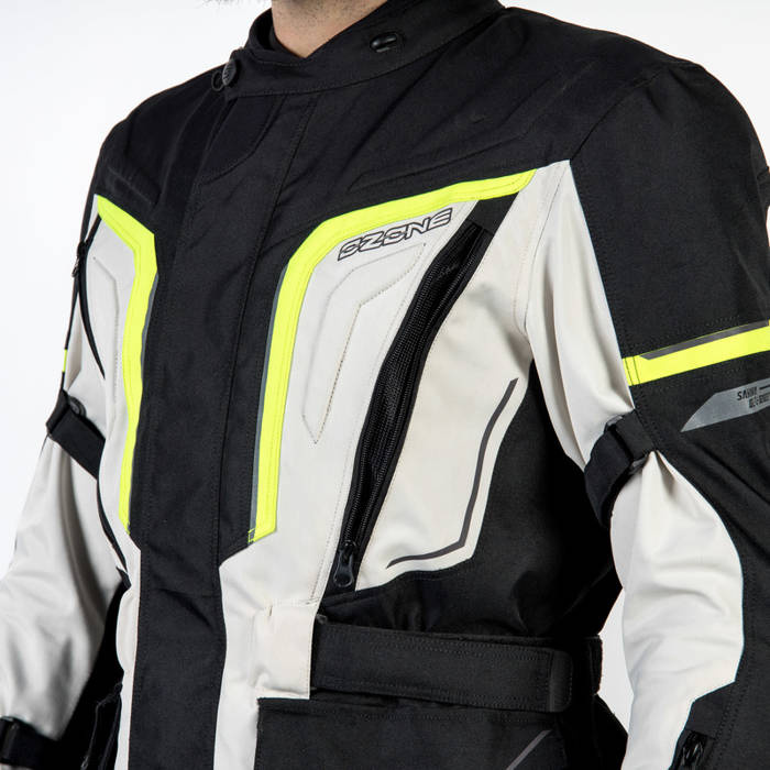 • Kurtka motocyklowa tekstylna miejska OZONE SAHARA czarna szary żółty fluo