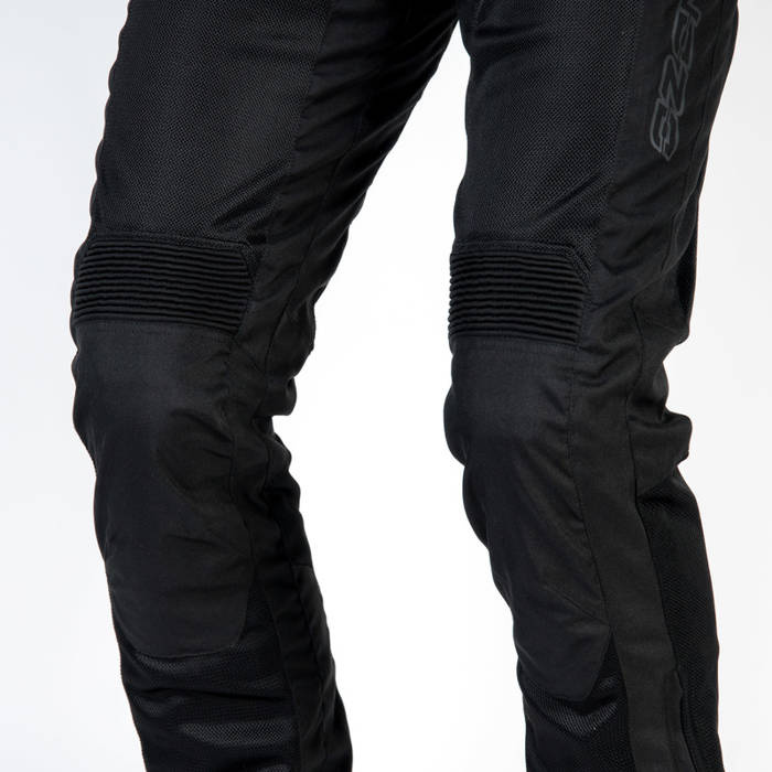Spodnie motocyklowe tekstylne Ozone Dart wyposażono w miękką meshową podszewkę i 2 kanały wentylacyjne. Obszar kolan chroniony jest certyfikowanymi ochraniaczami. Spodnie Ozone Dart mają elastyczne wstawki i regulacje obwodów dla najlepszego dopasowania i swobody ruchów. MATERIAŁ WYKONANIA