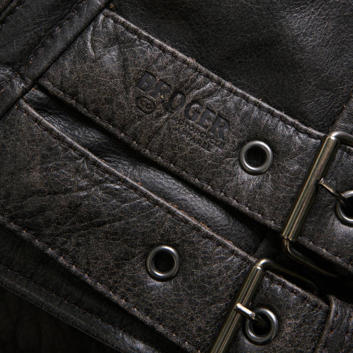 Kurtka skórzana Broger Ohio to model, który idealnie sprawdzi się na co dzień. Wykonana z najwyższej jakości skóry bydlęcej, zapinana na błyskawiczne zamki YKK. Ochronę newralgicznych miejsc zapewniają certyfikowane ochraniacze. Kurtkę Broger Ohio wyposażono w dodatkową kieszeń na ochraniacz pleców. MATERIAŁ WYKONANIA: