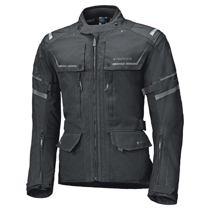 Kurtka motocyklowa tekstylna Held Karakum, dzięki regulacjom ramion i pasa biodrowego, pozwala na indywidualne dopasowanie do walorów sylwetki. Elementy odblaskowe sprawdzą się podczas jazdy motocyklem po zmroku. Held Karakum wyposażono w wyjmowaną podszewkę Gore-Tex, która zapewnia wodoodporność. MATERIAŁ WYKONANIA