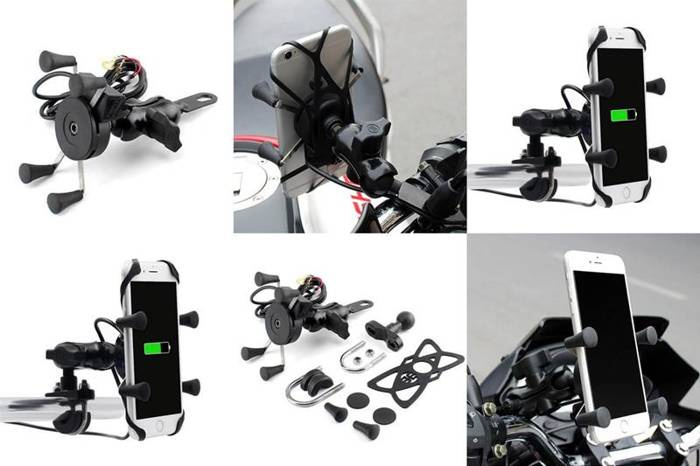 Uchwyt motocyklowy z ładowarką USB na telefon montowany na kierownicę lub lusterko BIKETEC TYP: RAM- METAL "L"